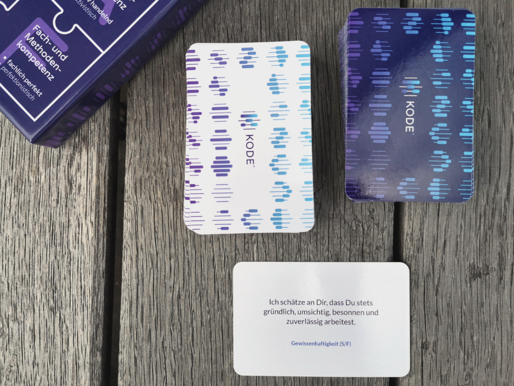 Es ist im Grunde ein Kartenspiel, bei dem man in einer sehr spielerischen und schnellen Art und Weise das macht, was man sonst im aufwendigen Analyseprozess durchläuft. Es eignet sich wunderbar für ganz viele Bereiche. Prinzipiell für alle Bereiche, in denen man KODE® sonst auch einsetzt, aber mit einer sehr niedrigen Einstiegsschwelle. Man kann, gerade im Kick-off-Bereich oder bei Azubis und High Potentials, sehr schnell ein Gefühl dafür schaffen, dass Menschen unterschiedliche Kompetenzen haben. Jeder Spieler kann feststellen, welche Kompetenzen er mitbringt und woran diese festgemacht werden.