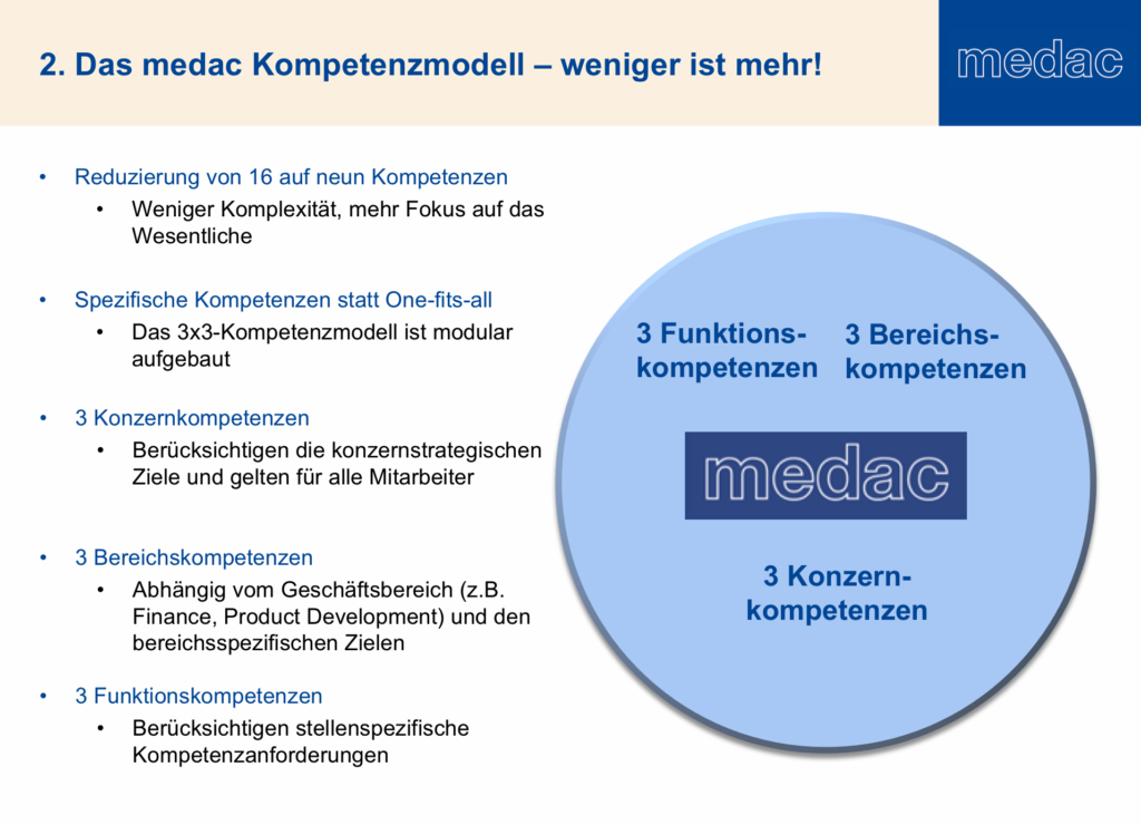 - Konzernkompetenzen: Welche Kompetenzen benötigt jeder medac-Mitarbeiter, um die Konzernziele zu erreichen?