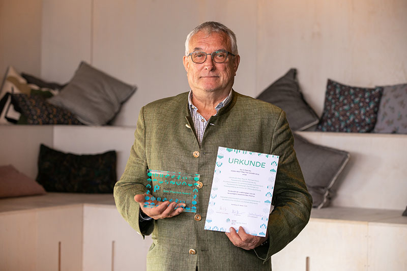 Dr. Karl Kreuser, Jury-Mitglied der ersten Stunde, verlieh direkt im Anschluss an die Keynote die KODE® Best Practice Awards 2018. Die gläserne Trophäe für den 1. Platz, dotiert mit 800 Euro, überreicht er Prof. Dr. Thomas Apitzsch von der Hochschule für angewandtes Management. Apitzsch wurde für die Kompetenzidentifikation und Kompetenzentwicklung von Mitarbeitern und Trainern des Nachwuchsleistungszentrums des Fußballbundesligisten 1. FC Nürnberg ausgezeichnet.