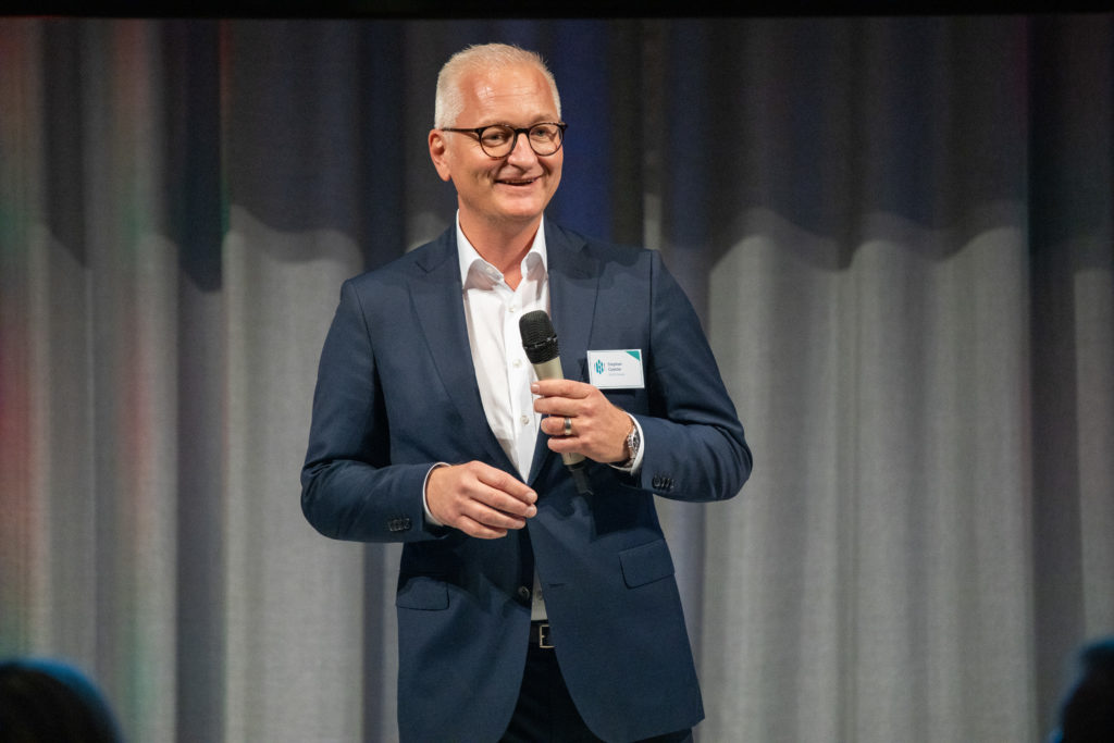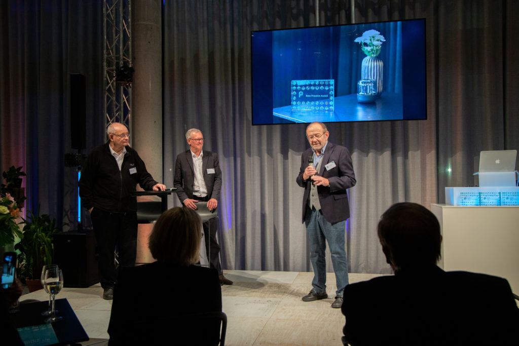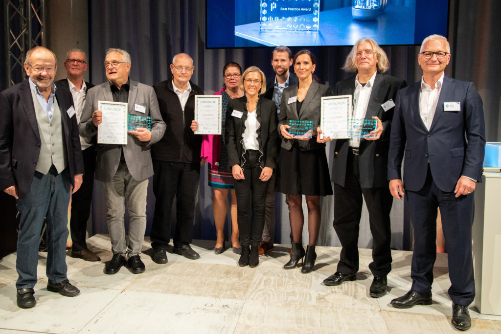 Im Anschluss stürmten die Nominierten für den KODE® Best Practice Award 2019 die Bühne, um den Gästen in knackigen Kurzpräsentationen ihre eingereichten Konzepte und Projekte vorzustellen. Prof. Dr. Lothar Schäffner übernahm als Jury-Vorsitzender die Moderation der Preisverleihung und brillierte dabei mit humorvollen Pointen.