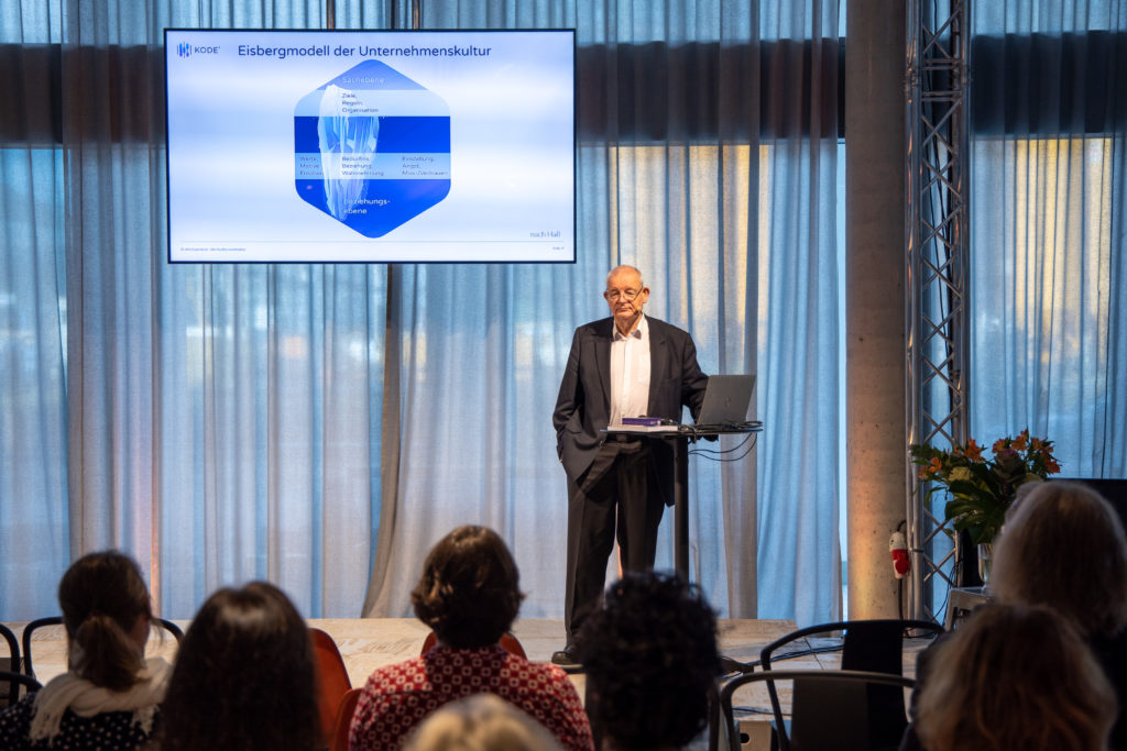In seiner anschließenden Keynote griff Prof. Dr. John Erpenbeck, der an der Entwicklung von KODE®W maßgeblich beteiligt war, das Thema auf und spannte einen Bogen zur Unternehmenskultur, die von den Werten geprägt wird, die die Mitarbeiter ins Unternehmen bringen. Außerdem thematisierte er die Rolle der Werteorientierung und gab bei dieser Gelegenheit Einblicke in den neuen KODE® WerteAtlas.