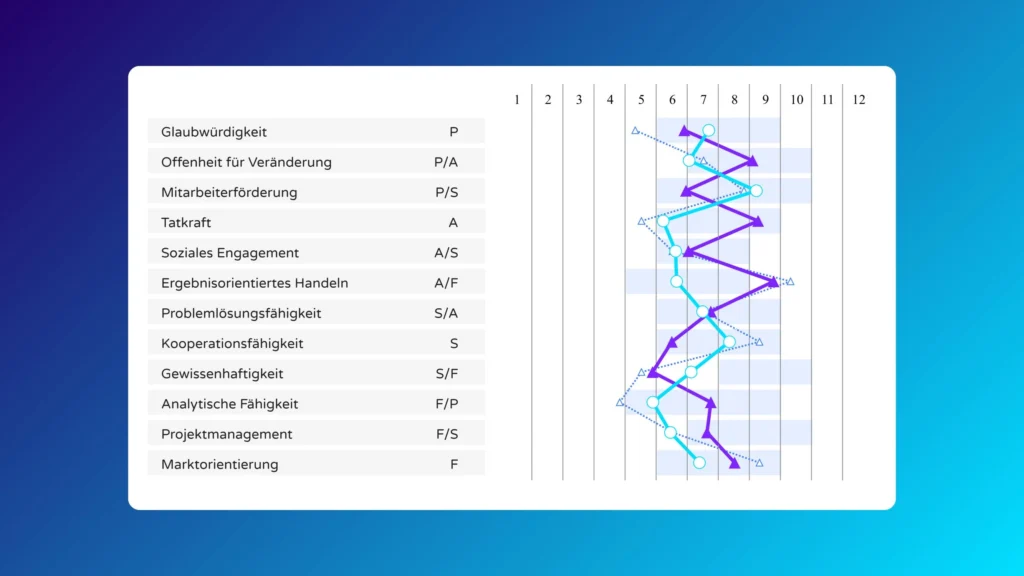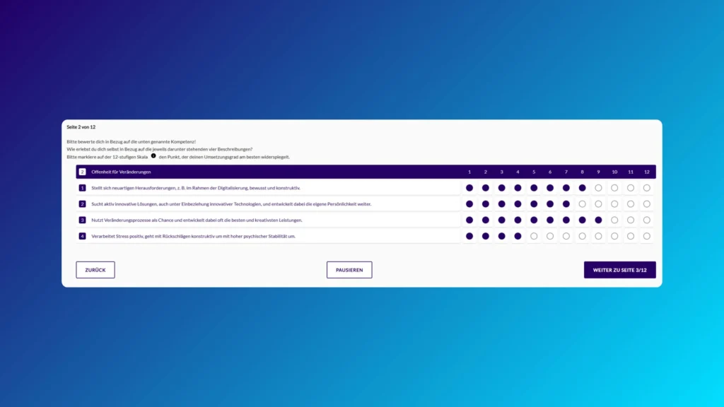 Aus den Ergebnissen lassen sich gezielte Maßnahmen für Personalentwicklungf, Coaching und Weiterbildung ableiten. Darüber hinaus kannst du direkt passende Kompetenzentwicklungsprogramme anschließen, um die identifizierten Potenziale in konkrete Entwicklungsschritte umzusetzen.